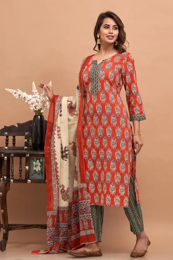 Women Pure Cotton Kurta Pant Dupatta Set